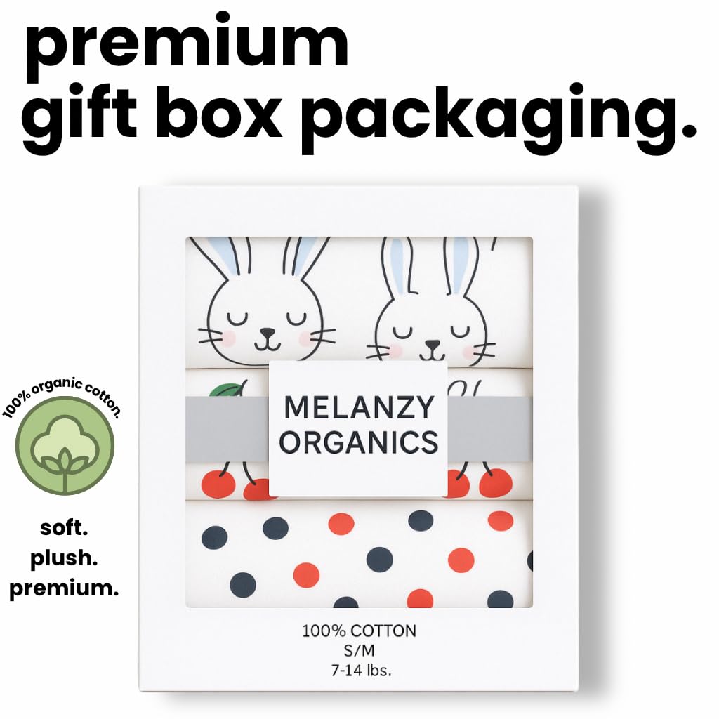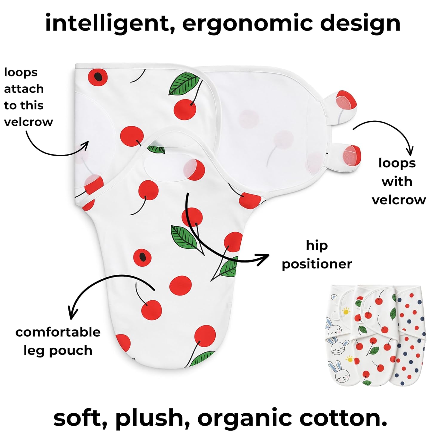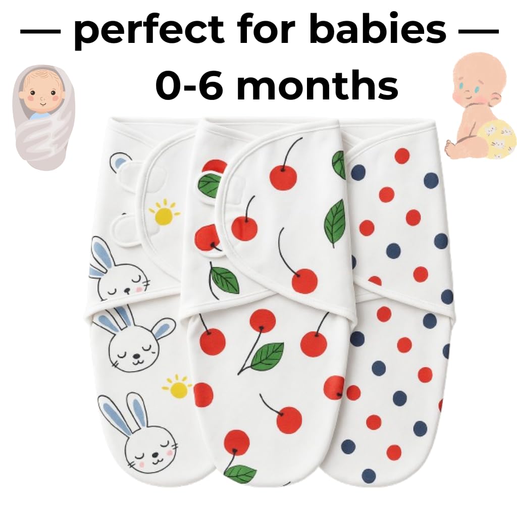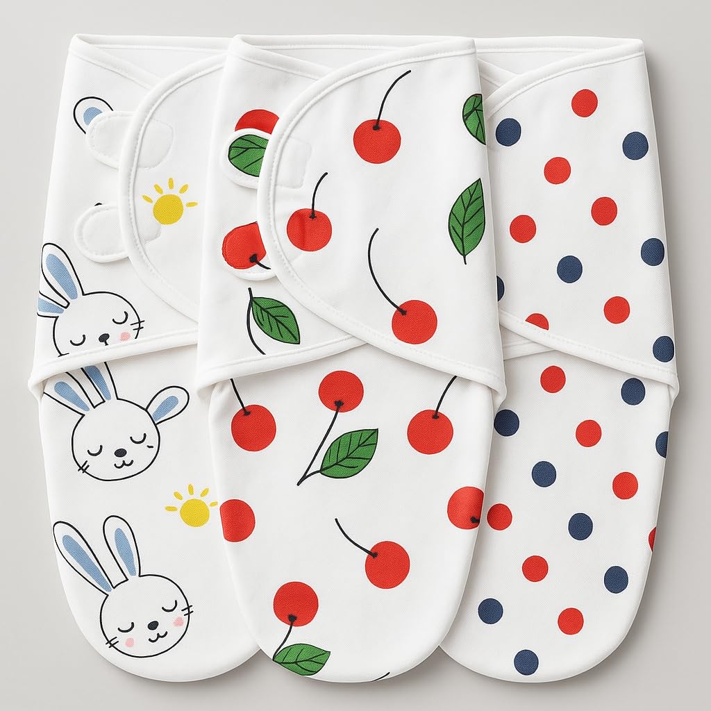 Our swaddles come in a delightful trio of gender-neutral prints: charming cherries, playful polka dots, and adorable rabbits. Each design adds a touch of style while ensuring your little one stays cozy and fashionable!