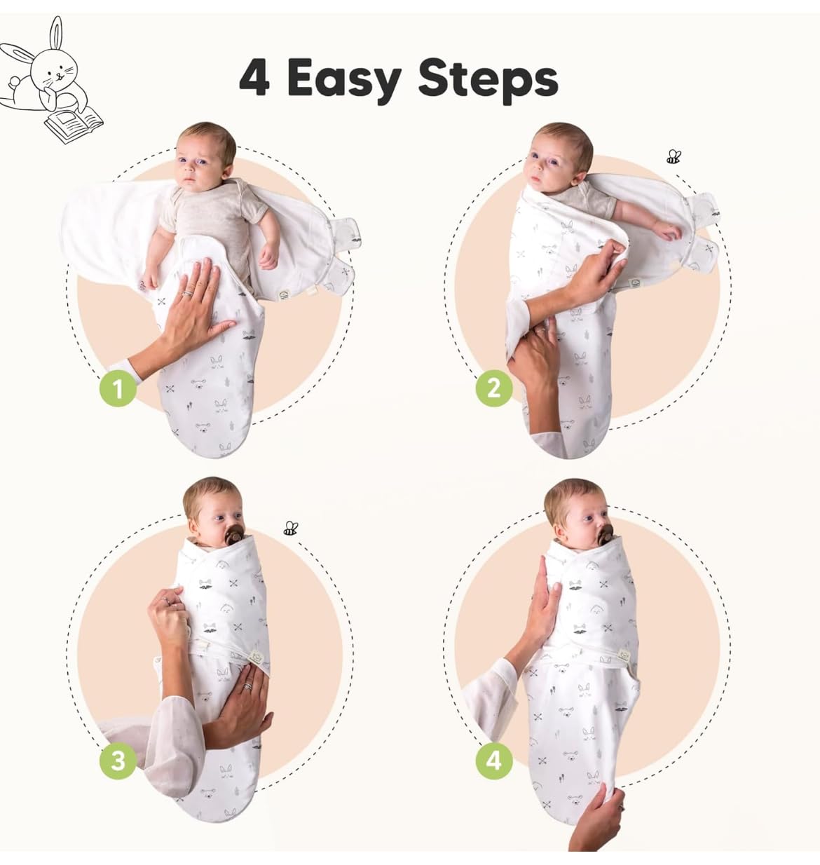 Answer 2: The innovative adjustable Velcro closure allows for easy swaddling: simply place your baby inside the swaddle, secure the Velcro, and within seconds, your baby is comfortably wrapped without needing any special skills or complicated techniques.